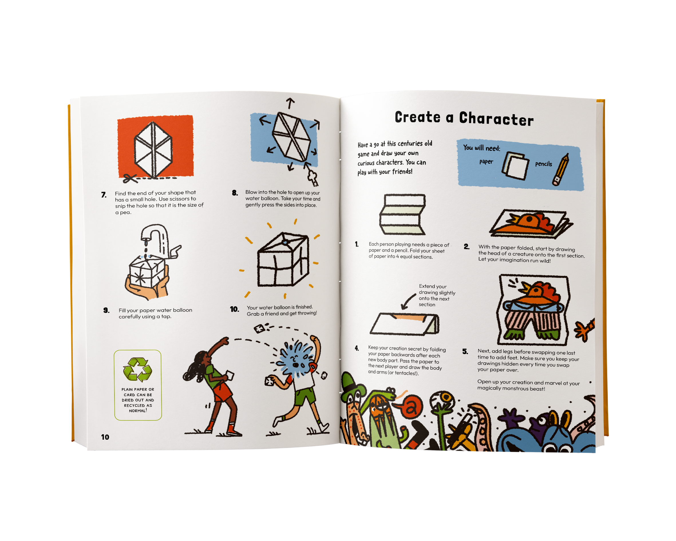 Back to books 101 Things to do With a Piece of PaperA fun and simple activity book for kids, featuring games and activities to do with a piece of paper. Illustrated by Sean O’Brien and layout design by me. © The Quarto Group